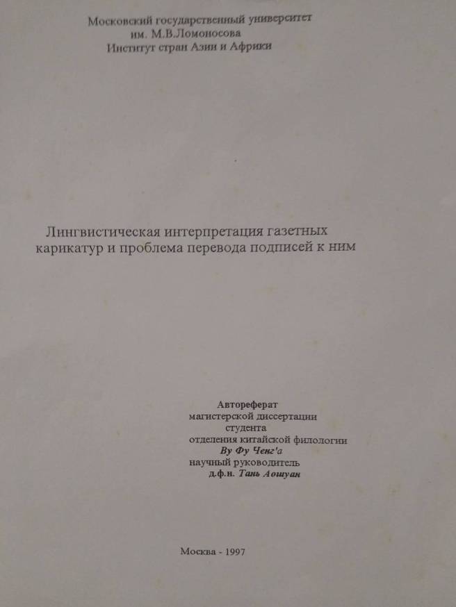 在我留學期間,越是鑽研俄羅斯民主化的報刊漫畫,越發現其中大有學問。通過1995-1997年的2年苦讀,我終於完成碩士論文《報刊漫畫的語言學分析與漫畫文字的翻譯問題》,並通過莫斯科大學嚴格的學術評審會的答辯,而獲頒碩士學位。回想起來,這過程毋寧說是「無心插柳柳成蔭」。如今我已退休,時間也相對充裕,除了持續在自己的部落格推出《台俄關係的空白點》俄文版的中譯本外,腦際偶爾也會浮現一個新念頭:既然曾與漫畫結下良緣,何妨再續前緣,同樣以漫畫語言學的研究為題目,更上層樓攀摘博士學位?哈哈哈?!
